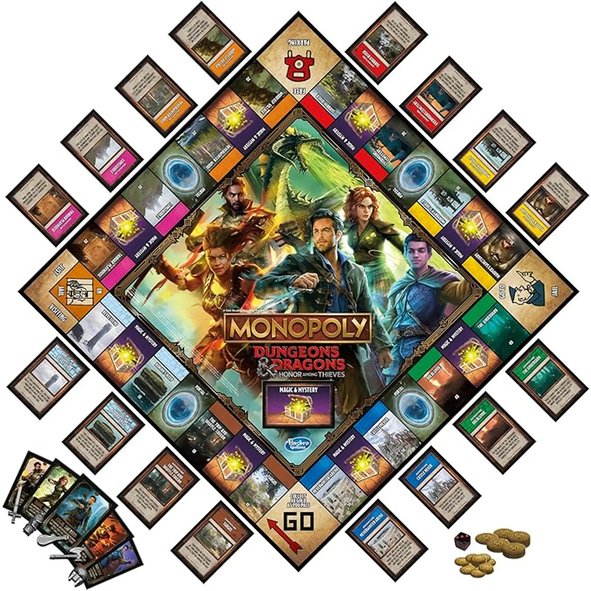Monopoly Dungeons & Dragons: Honor Among Thieves je tematska različica klasične igre Monopoly, ki združuje svet Dungeons & Dragons z mehaniko kupovanja, trgovanja in raziskovanja. Igra je navdihnjena z istoimenskim filmom in igralcem ponuja priložnost, da se podajo na pustolovščino po Forgotten Realms – polnem magije, zakladov in nevarnosti.