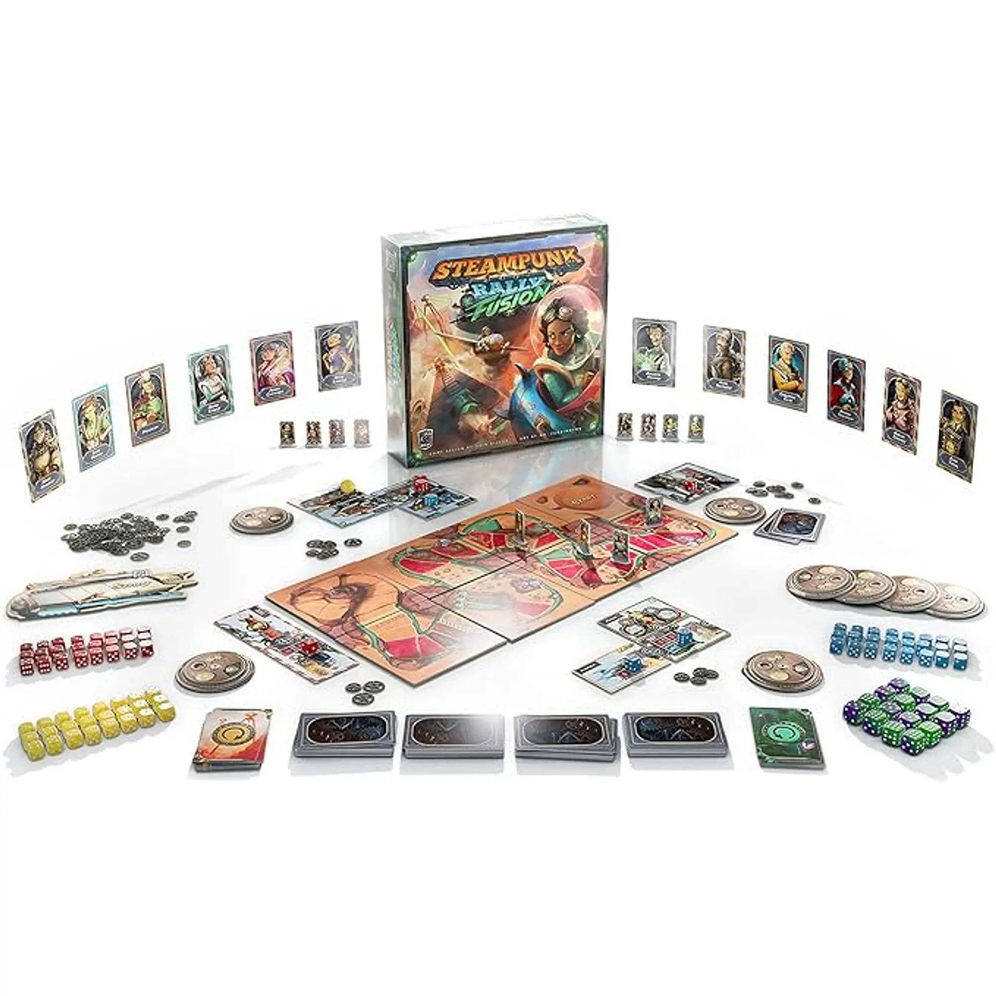 Steampunk Rally Fusion je samostojna dirkalna družabna igra z močnim steampunk pridihom, ki združuje gradnjo strojev, metanje kock, izbiranje kart in kaotično tekmovanje med znanstveniki iz različnih zgodovinskih obdobij.