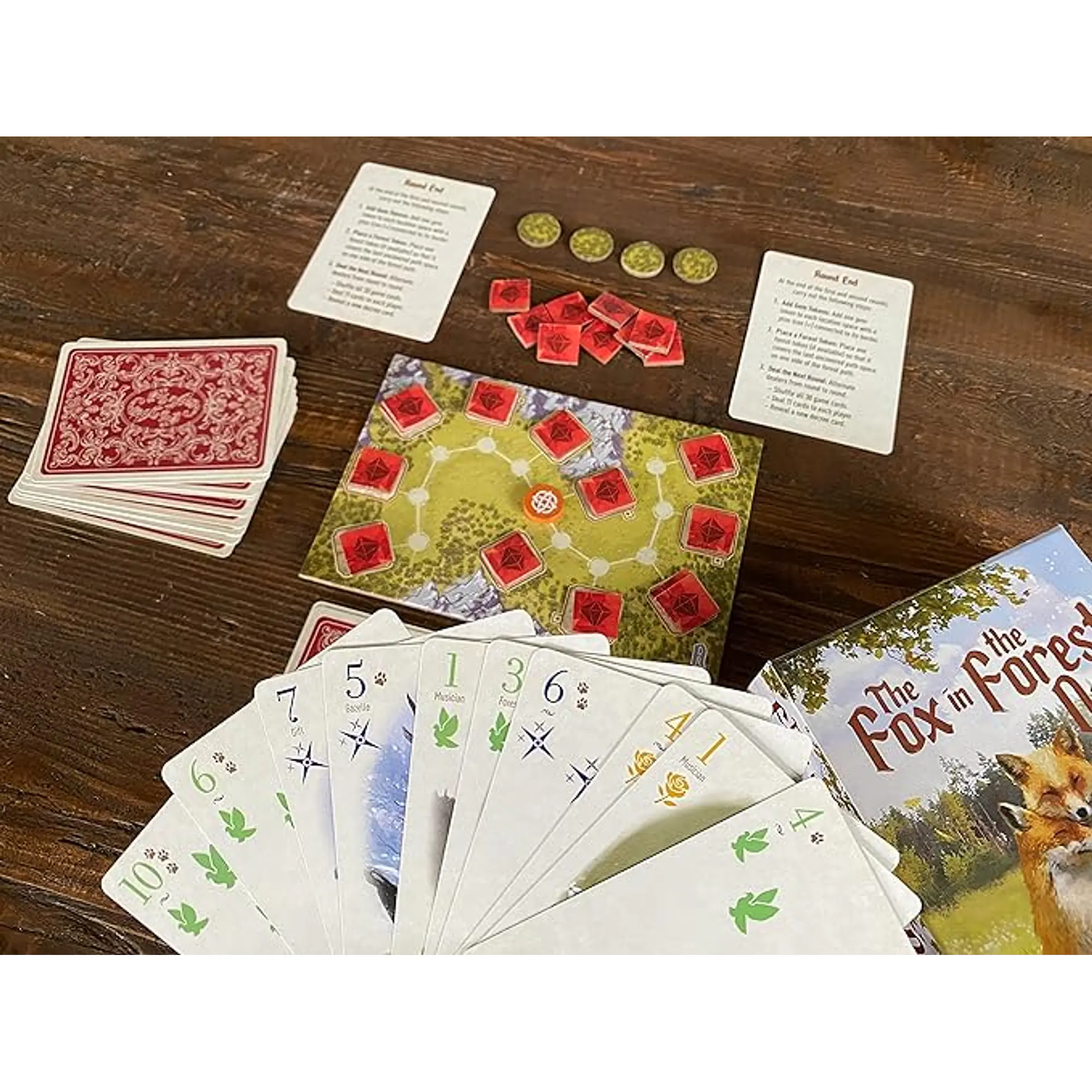 The Fox in the Forest Duet je očarljiva in edinstvena kooperativna igra za dva igralca, ki se osredotoča na sodelovanje in strateško igro. Igralca prevzameta vloge pravljičnih junakov, ki skupaj raziskujeta čarobni gozd, poln živobarvnih lisic, cvetlic in pravljičnih bitij. Tema igre temelji na pravljičnem potovanju skozi gozd, kjer je cilj igralcev zbrati vse zaklade in doseči izhodišče, preden zmanjka časa.