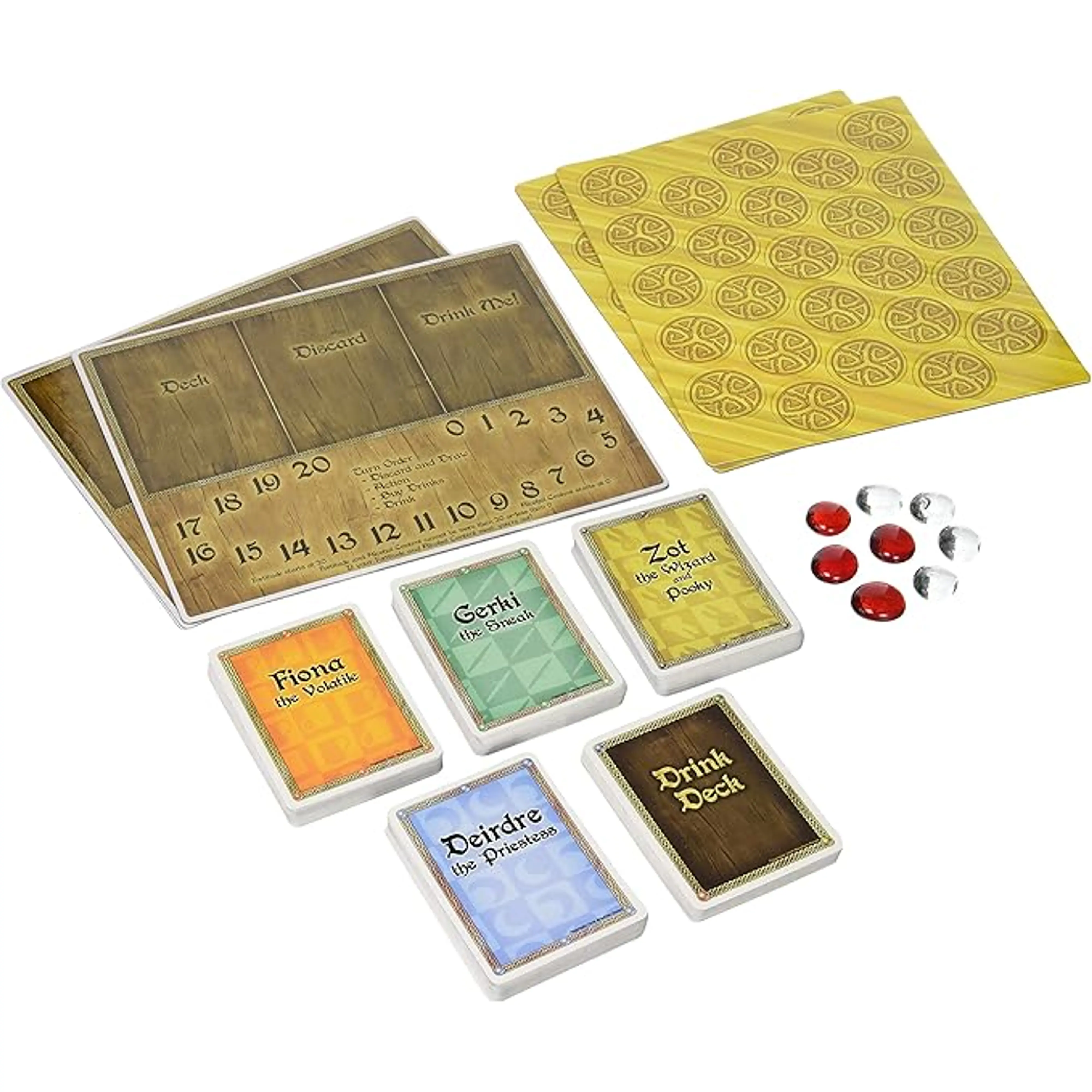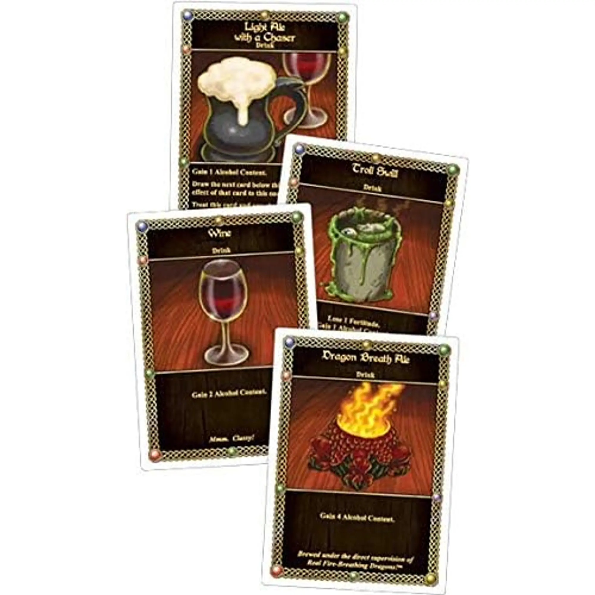 Igra vsebuje igralne karte za različne like, žetone za označevanje denarja, označevalce za alkohol in življenja ter nekaj dodatnih komponent za posebne učinke. Vsak igralec ima svoj lik s prilagojenim kompletom kart, ki ponujajo edinstvene napade, obrambne ukrepe ali trike, s katerimi lahko poskusijo obdržati trezno glavo ali druge igralce spraviti iz igre.